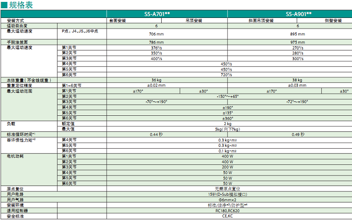简介: 简单、可靠、高性能和低成本。1、紧凑型设计,狭小空间内也能自由灵活运动;2、可实现生产率最大化;3、业界最高的重复定位精度;4、较大的工作区域;机器人占地面积仅为工作空间的1/87(S5-901);5、第5关节运动范围比原有机型大±10